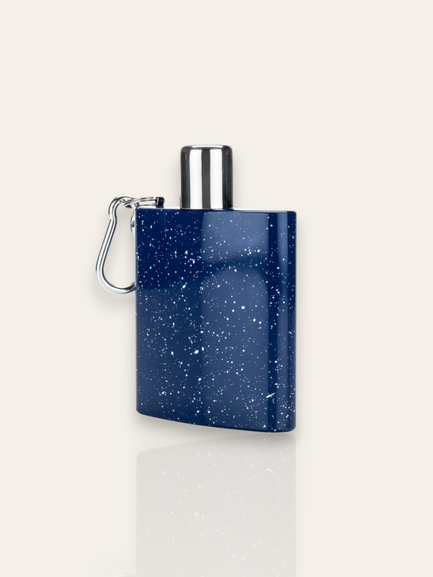 This classic campsite-ready carabiner flask, finished in that nostalgic blue and white speckled enamel, hooks effortlessly onto a backpack or belt loop for spirited adventures at the drop of a hat. Lightweight and packable!