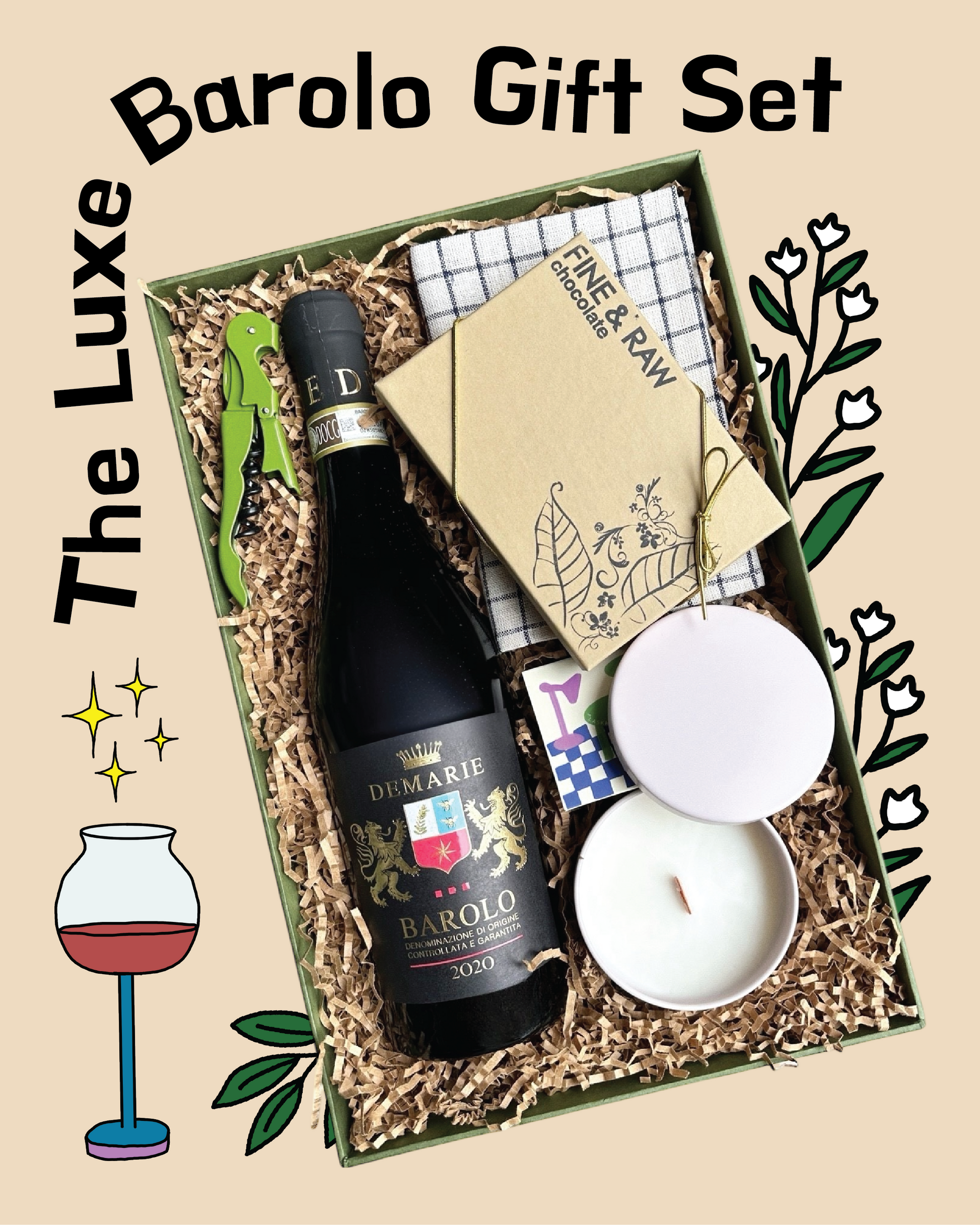 A beautiful set for the bon vivant with good taste. Boss, colleague, sister, professor, mentor. That person that leans into life with reckless abandon and welcomes joy into their lives like no one else. The Luxe Barolo Experience includes one of our most favorite red wines: Barolo - The King of Wine and the Wine of Kings!