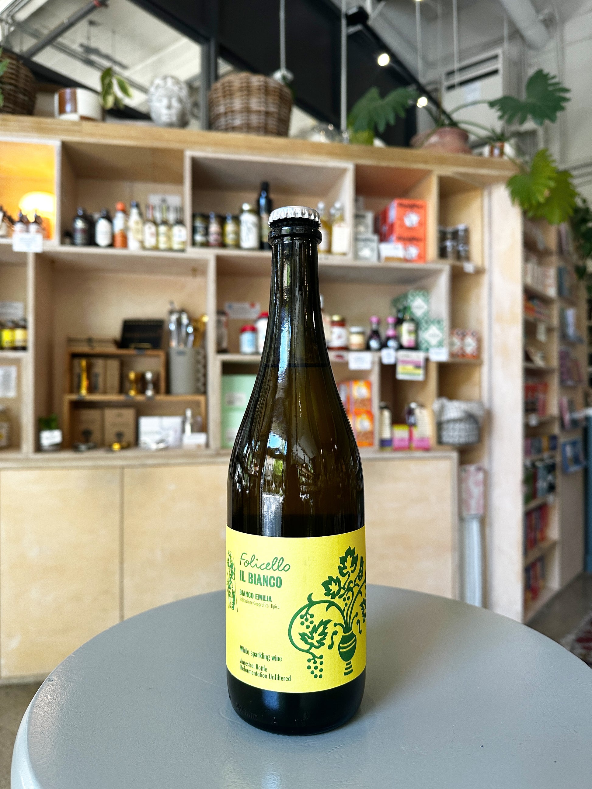 Folicello Il Bianco Ancestrale Sparkling White is slightly cloudy, slightly sparkling, and completely delicious. It has many subtle flavors and textures: chalky-wet stone minerality, light-zesty citrus, beautiful jasmine and sage, and a soft creaminess.