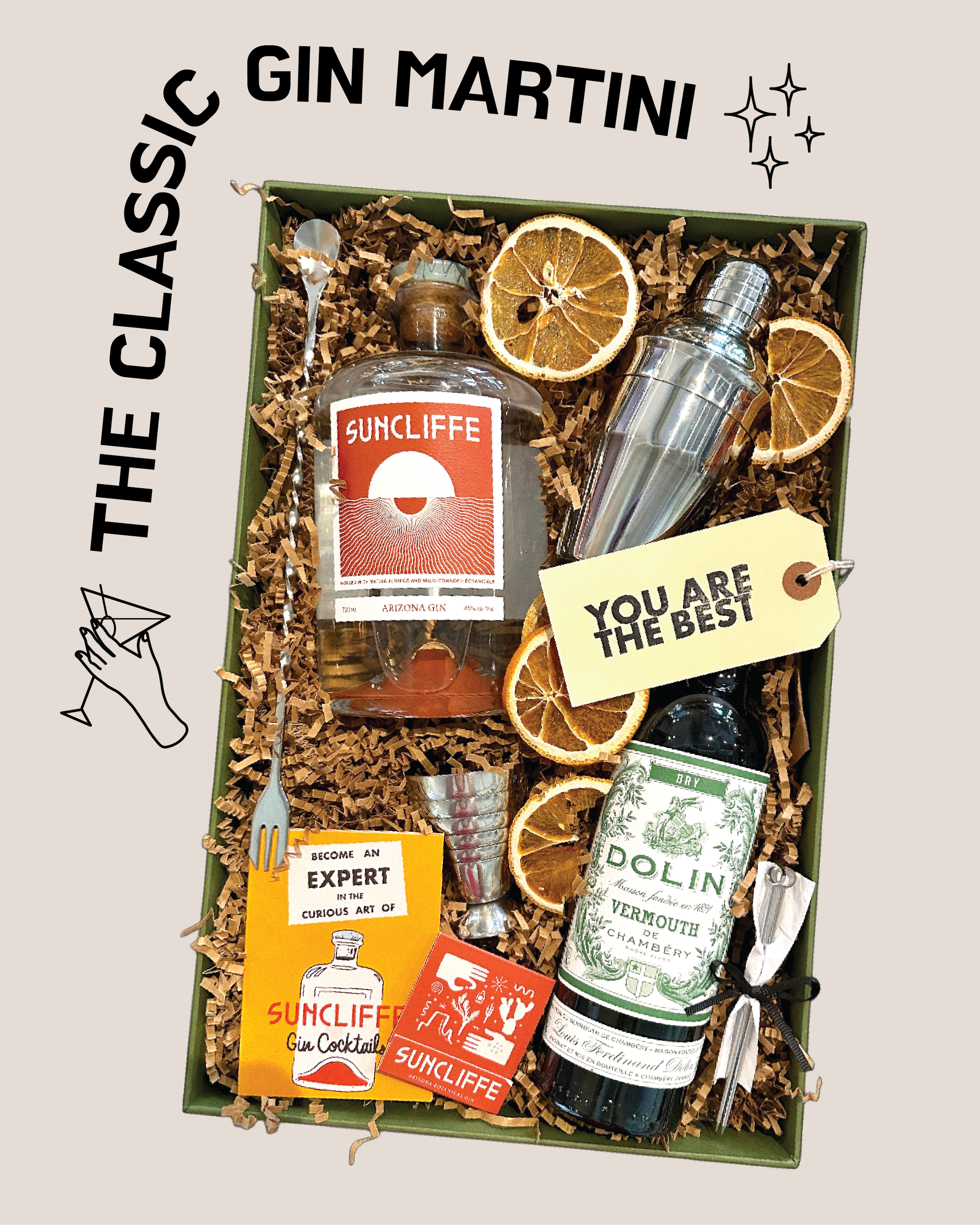 The classic gin martini will never go out of style! The better the gin, the better the martini! This gift set includes everything your special recipient needs to whip up a delicious + classic martini. Each set comes with printed F&F recipe card and your personalized gift note, all presented in our recyclable premium cardboard gift box with lid.